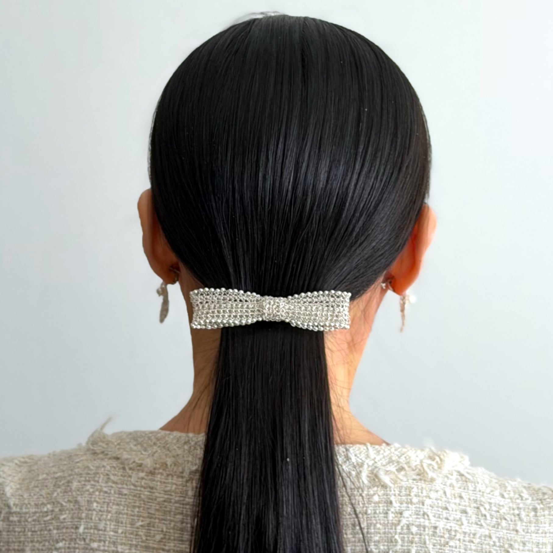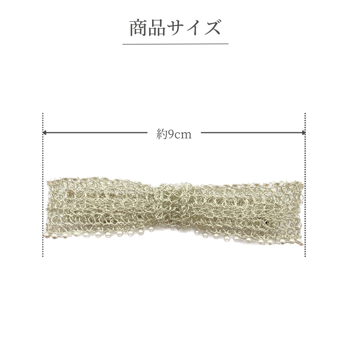 可憐にきらめくシルバーワイヤーレースのパールリボンバレッタ